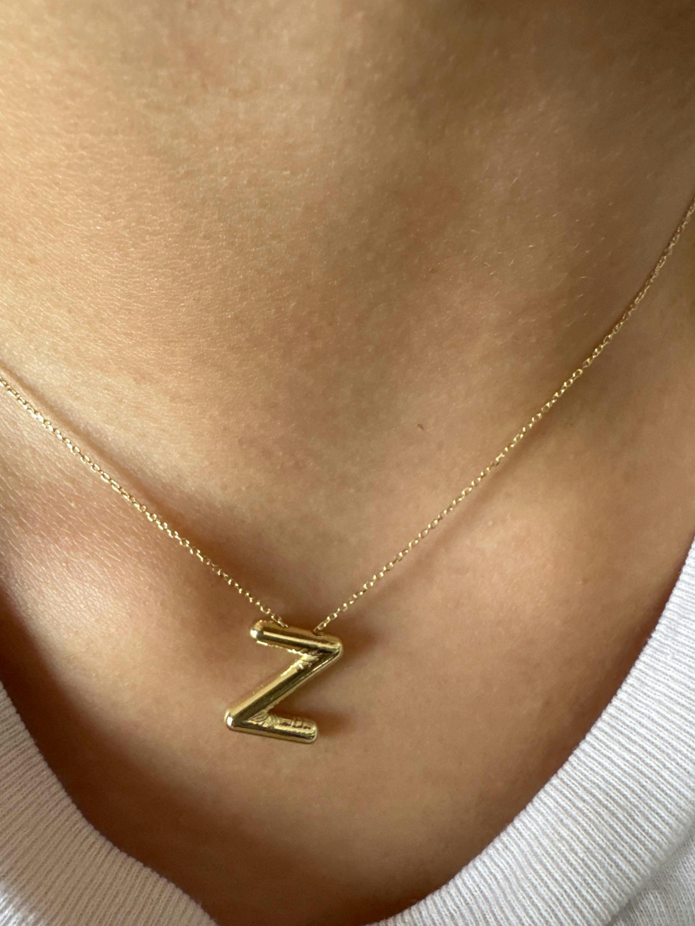 14K Gold 3D Letter Necklace, Bubble Name Necklace