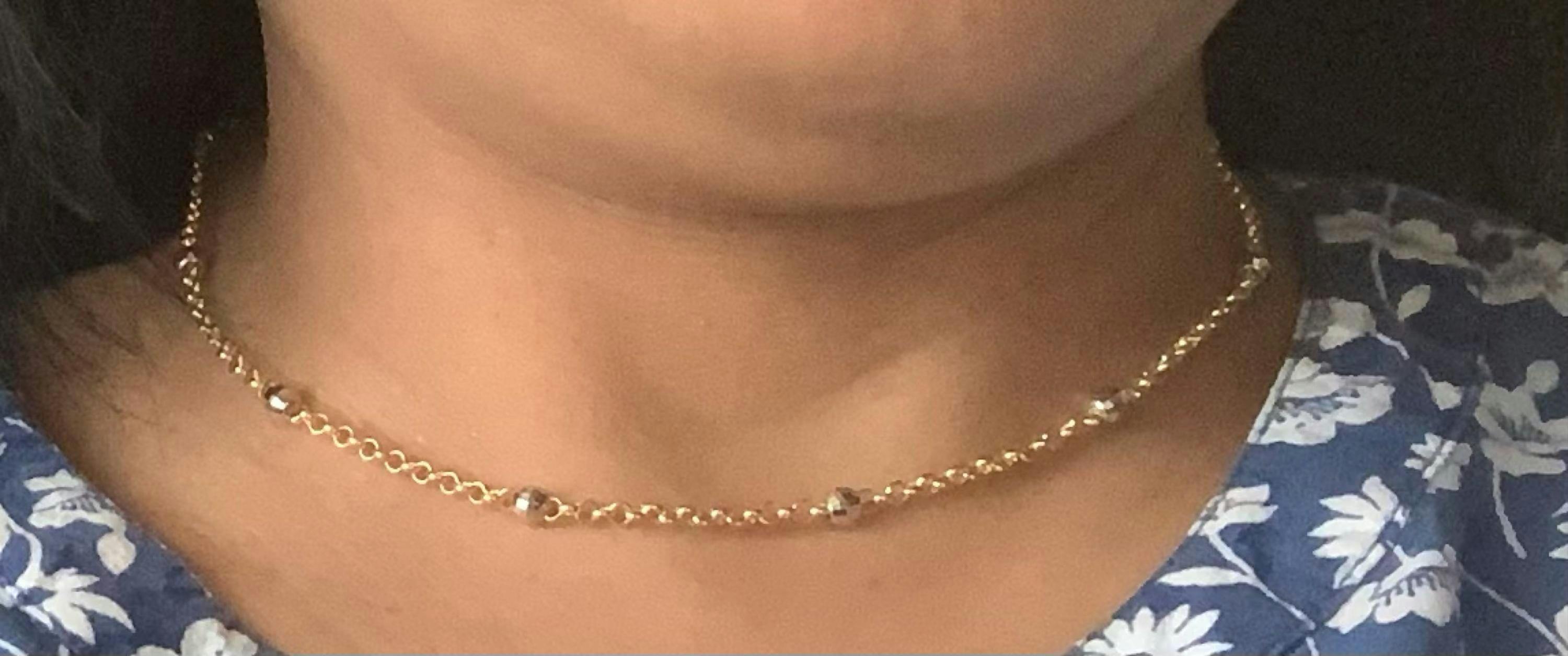 14K Gold Bead Chain Necklace, Two Tone Balls Necklace