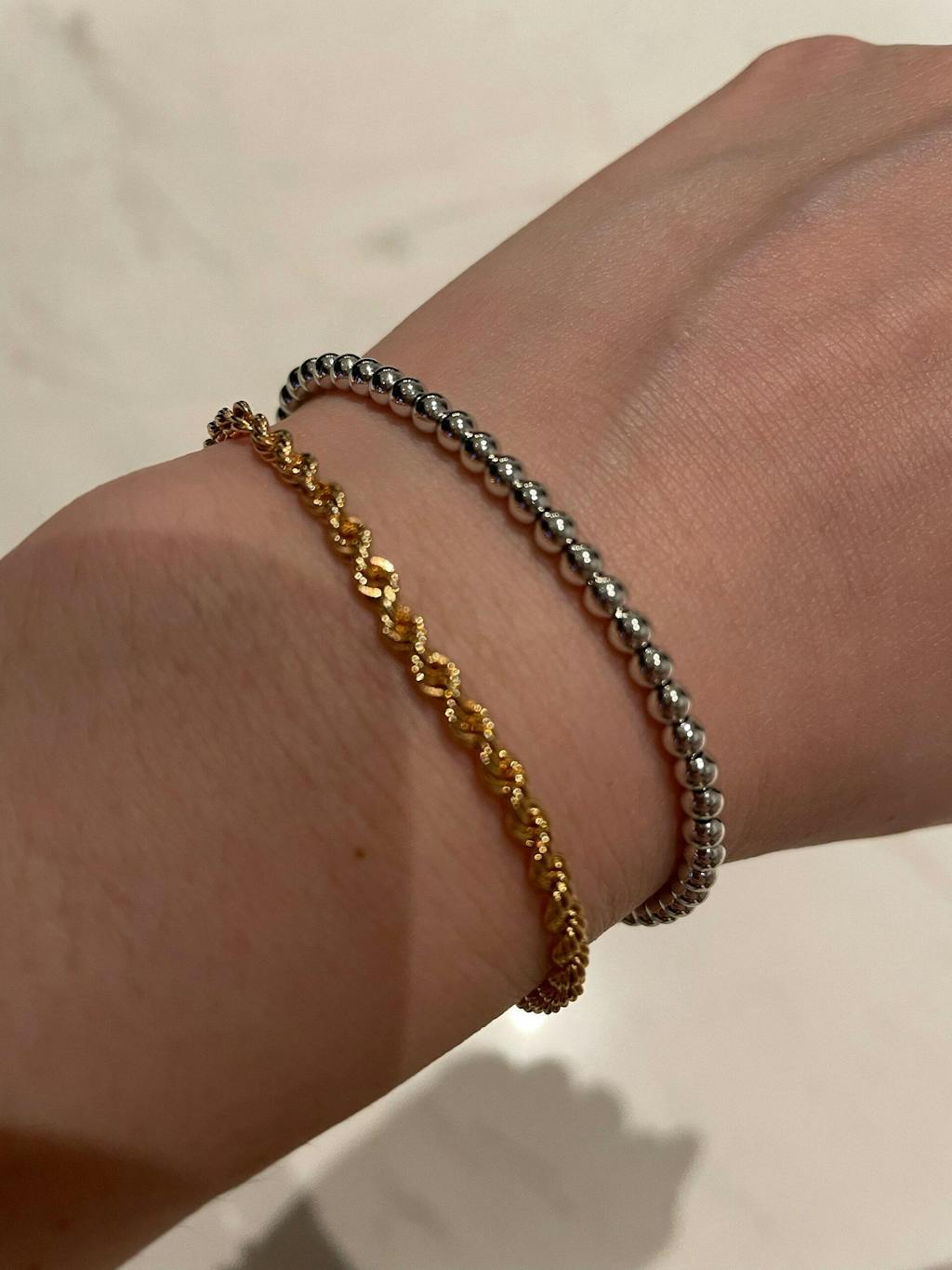 14K Gold Beaded Chain Bracelet, 3mm 5mm Mini Balls Bracelet