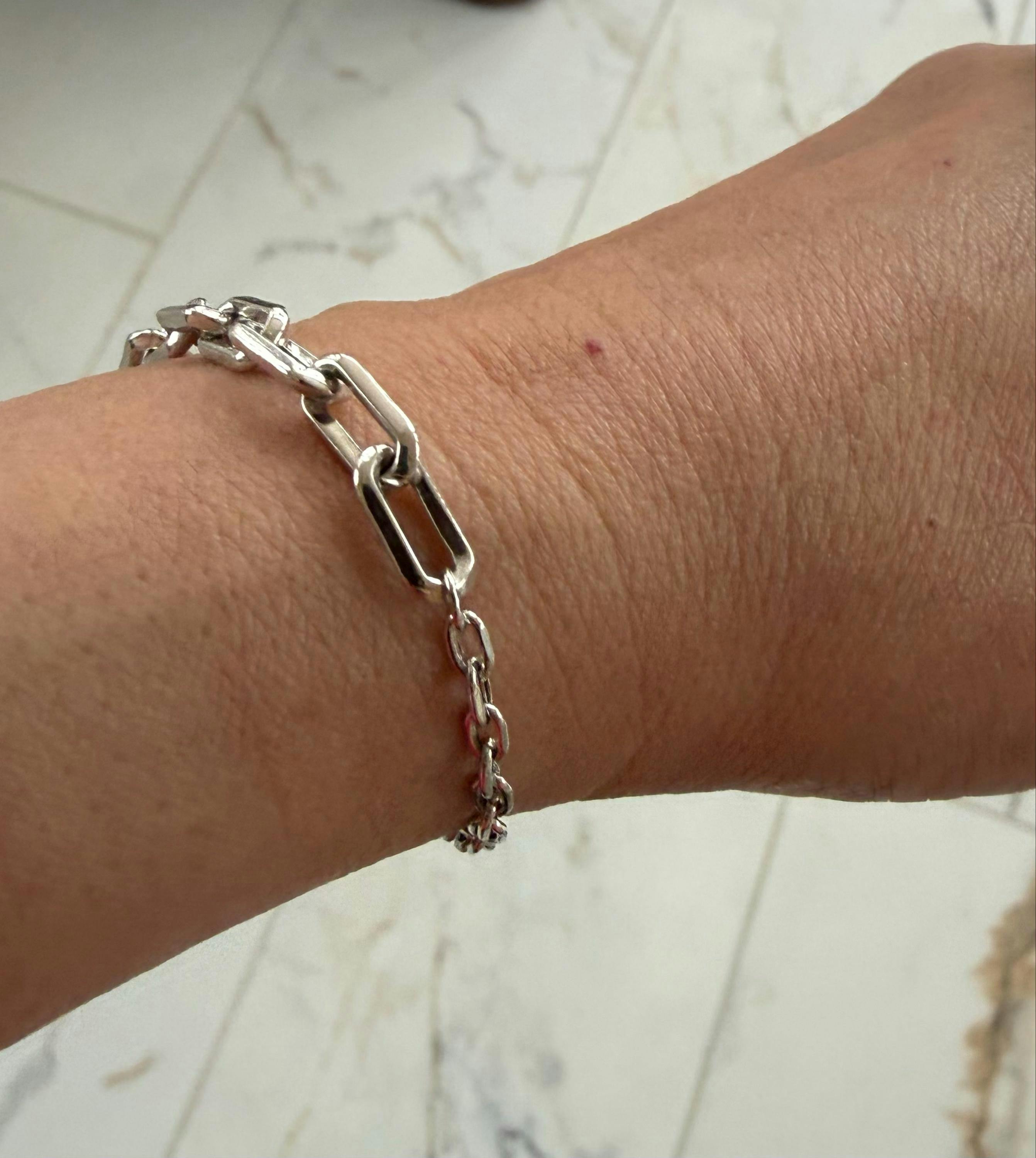 14K Gold Paperclip Rolo Chain Bracelet, Rectangle Paper Clip Chain